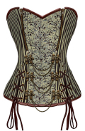 オーババストコルセットです。 フロントには2つファスナーとフロントフックが着いてますので着用しやすいタイプです。 デザイン性も高くしっかりと補正力もございます。 タイトなシルエットを強調します。 ヌードウエストサイズ-10㎝位をお選びください。 スチームパンクのロマンス漂う一品です。 中世の世界がお好きな方、いかがでしょうか。 モダンで現代的なデザインの為、普段でも着ることが出来ます。 ※お店でも販売しておりますので、お早めにご検討ください。