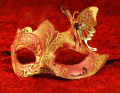 最新デビューした新作の仮面です。 とっても愛らしいベネチアンマスク 華麗な蝶と共にダンスを踊る・・・ そんな気分になりそうな蝶の仮面 画面上と実物では多少色合が異なって見える場合もございますのでご了承くださいませ。 蝶の部分のアイアンは金属の板を特殊な溶液で溶かして制作する方法で「腐蝕」といいます。そして立体的に加工して仮面とが出来上がります。線が細かいほど大変な作業ですがその美しさは、なんとも言えない素晴らしい一品です
