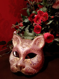 日本では人気の猫の仮面です。紫と金色の色遣いがとても素敵な猫の仮面です。