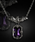 蝙蝠のペンダントです。古風なカットの紫の石が妖しくゴージャスな気分にさせてくれそうです。